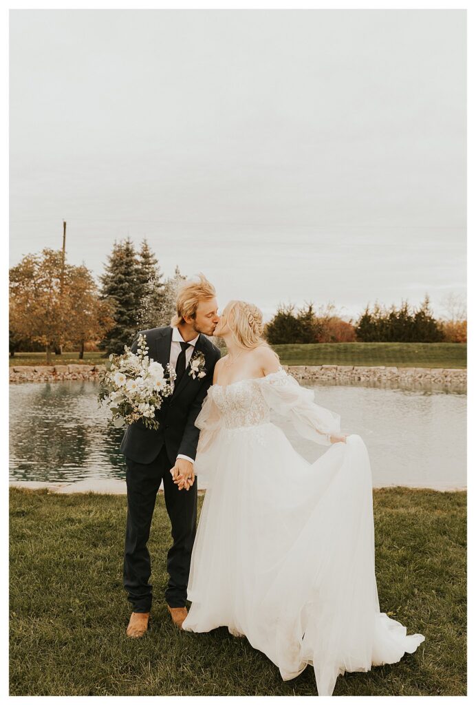 As a wedding photographer in Ontario, I have learned that some of the most unforgettable moments happen when things do not go as planned. The soft rain falling throughout the day created a romantic, cinematic atmosphere that felt like it was designed just for them. Raindrops gently cascaded around the couple, blending with the natural, earthy tones of the landscape and wrapping their day in a quiet kind of beauty.
